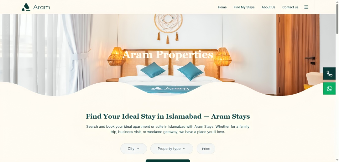 Client: Aram Stays (aram.pk -> rebranded & rebuilt to aramstays.com)