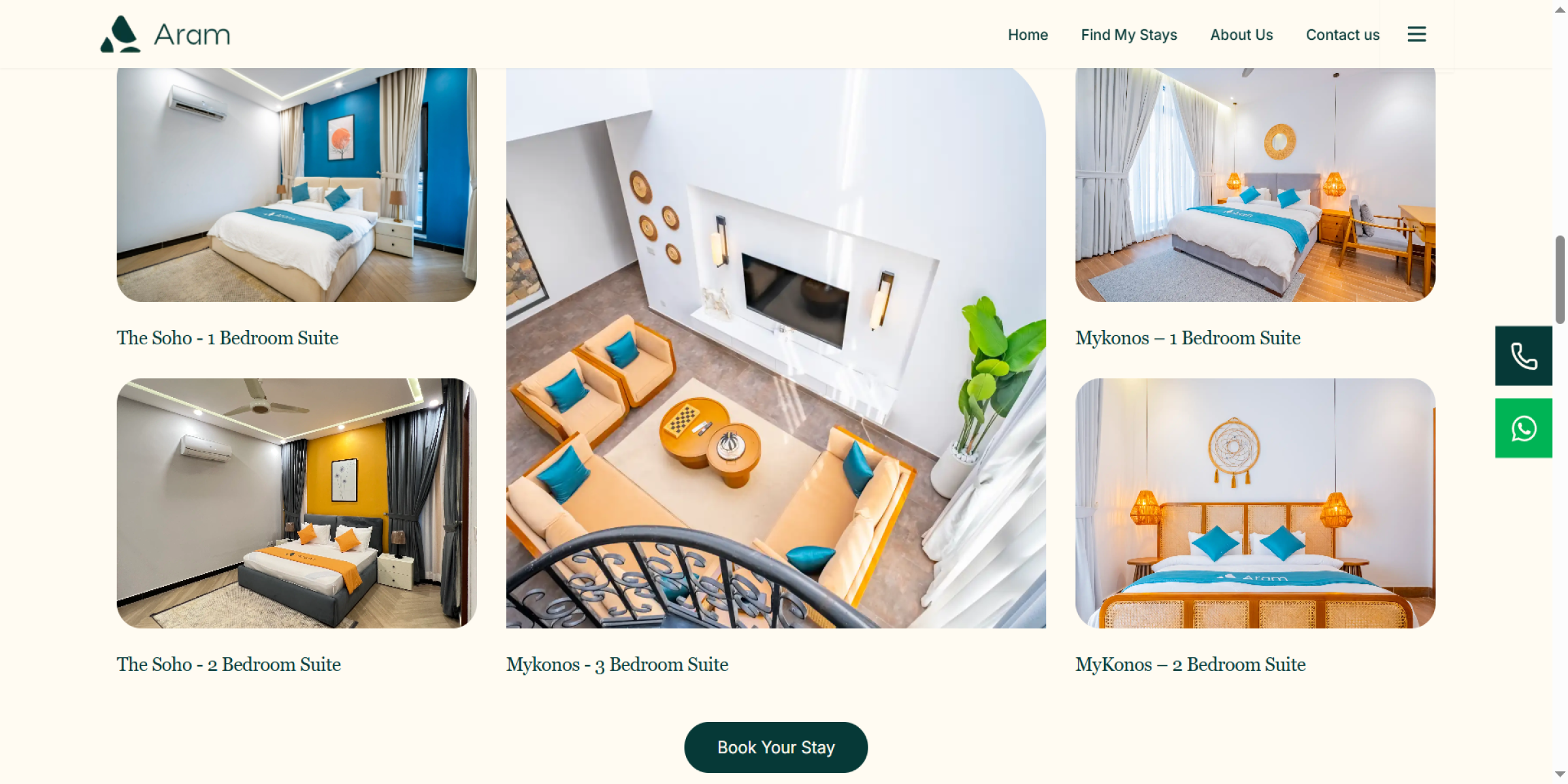 Aram Stays approached StackExpert with a clear pain point: their existing WordPress site (aram.pk) was failing to present their properties (short‑term and long‑term stays) in a polished, trust‑building way. The listing pages were cluttered, conversion paths unclear, and the site didn’t reflect the premium experience of the inventory.